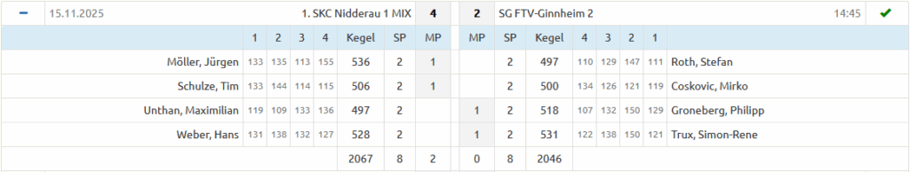 Philipp (518 Holz) und Simon (531 Holz) beendeten diese Begegnung aus Sicht der SG FTV-Ginnheim.