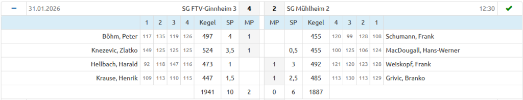 Am Ende stand es dann 1941:1887 und 4:2 für die SG, und dies bedeutete einen Heimsieg. Sehr gut.